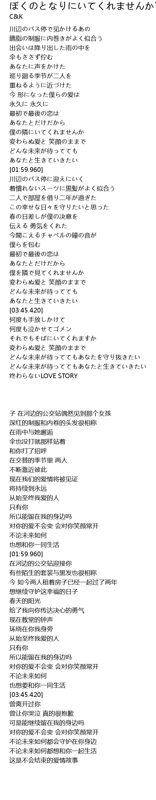 ぼくのとなりにいてくれませんか 歌詞 C K Kkbox